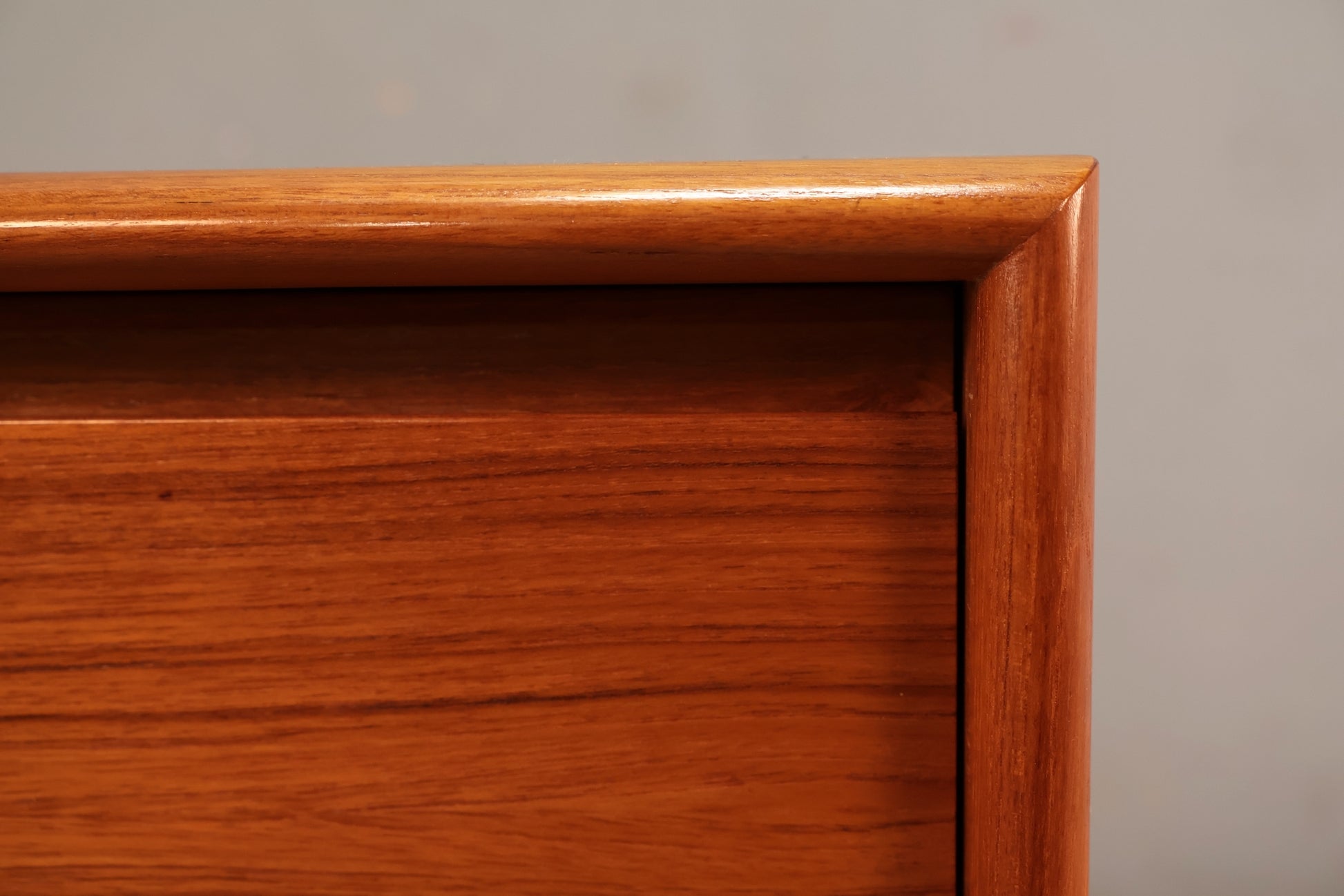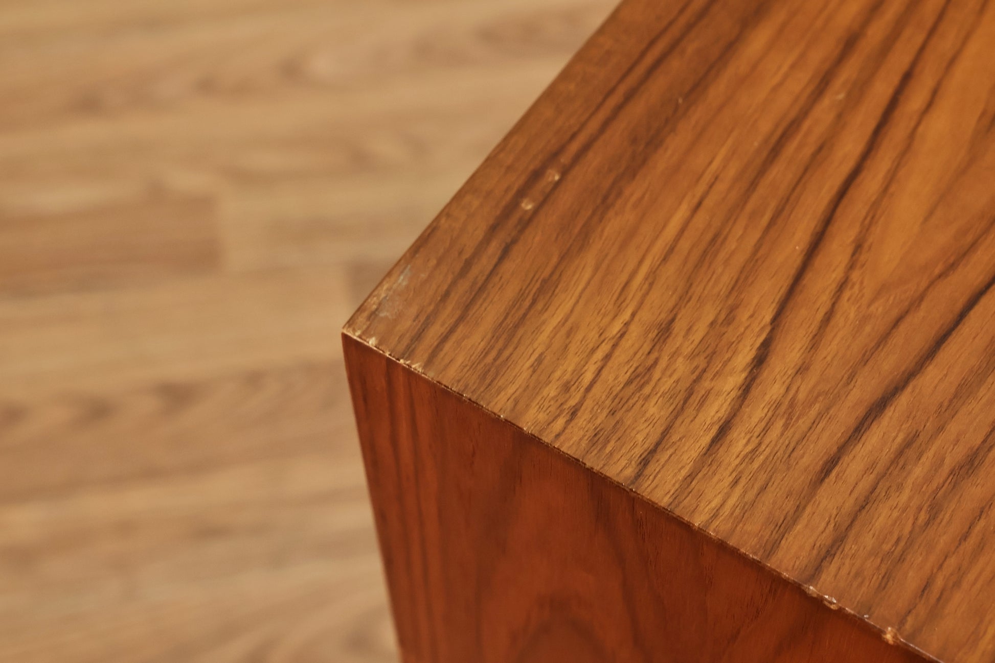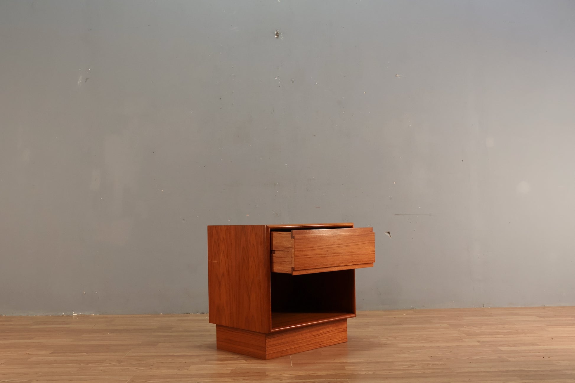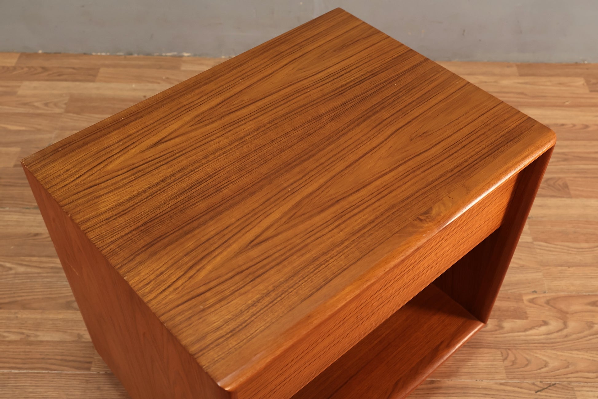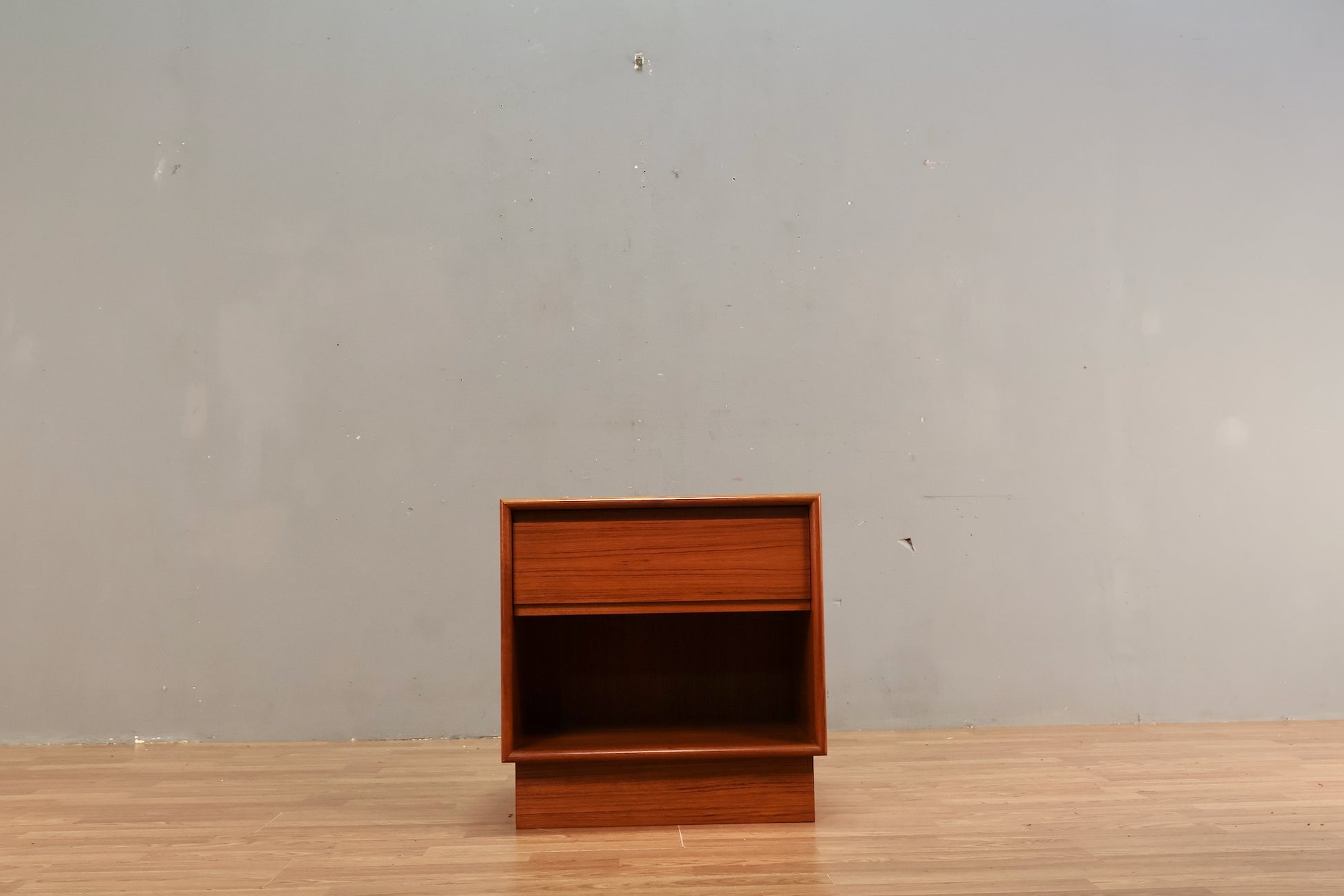 Sumptuously smooth teak nightstand that will look great in any bedroom. In good condition, a few scratches to sides and some minor wear around edges. SOLD SEPARATELY. Disclaimer: This piece is not available to view in-store. It is for sale online only, and by appointment at our NJ warehouse. Once purchased, it will be transported to our Manhattan store for pick-up or delivery. All sales are FINAL. Please call if you have any questions regarding the piece prior to purchase or to place a 15% deposit to see the piece in-person in our store.